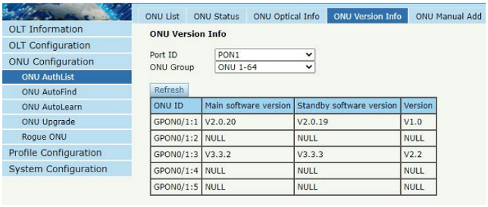 Querying single ONU version info. please check ONU L List => Detail Info.