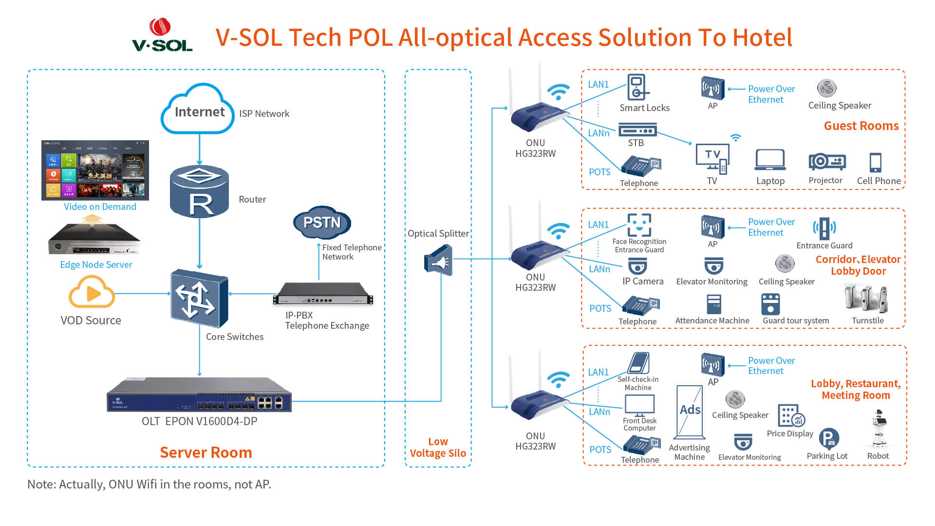 1 network with multiple functions: One network meets all access scenarios like guest rooms, security, wireless, and access control to achieve full coverage of all scenarios.